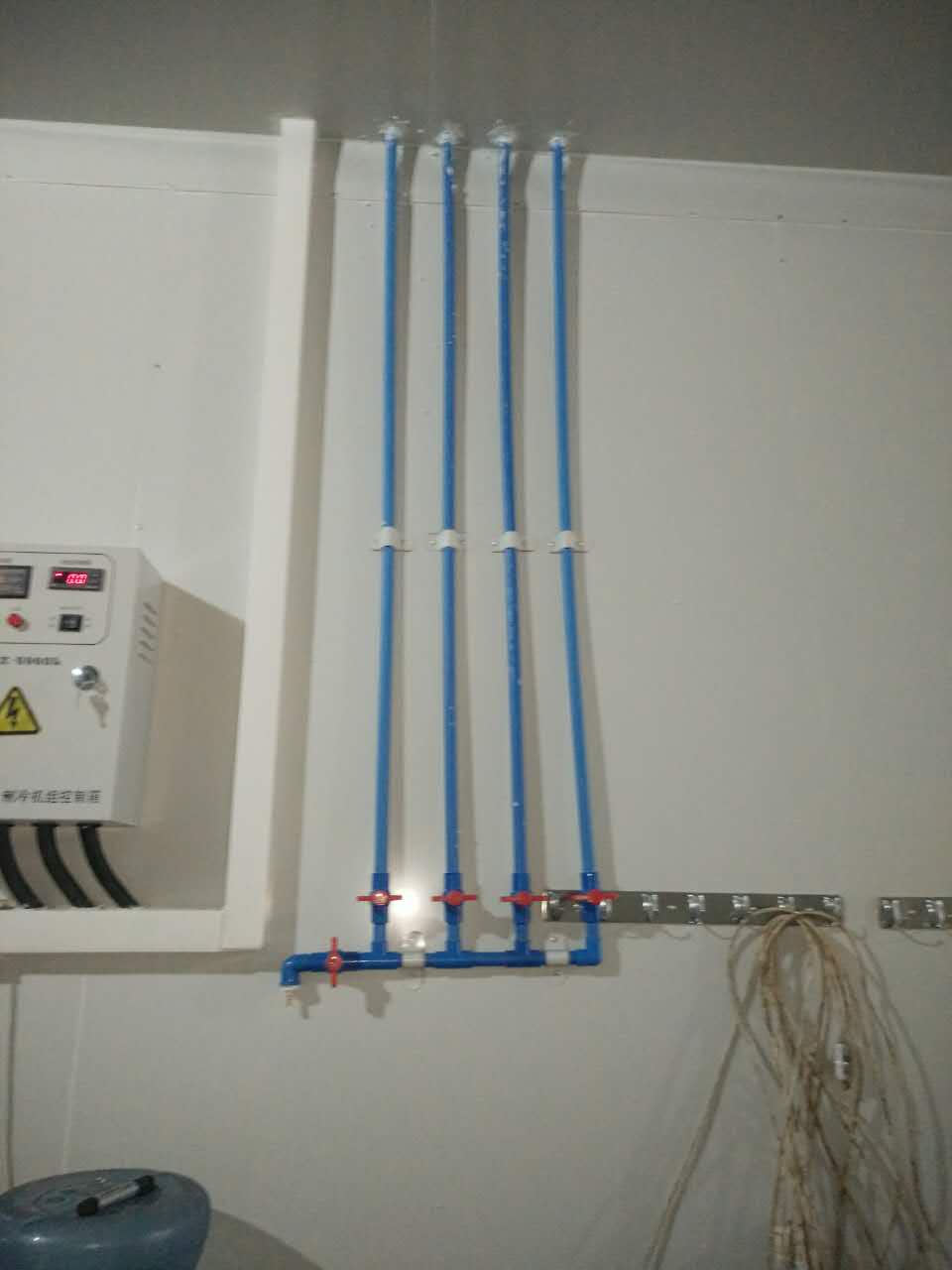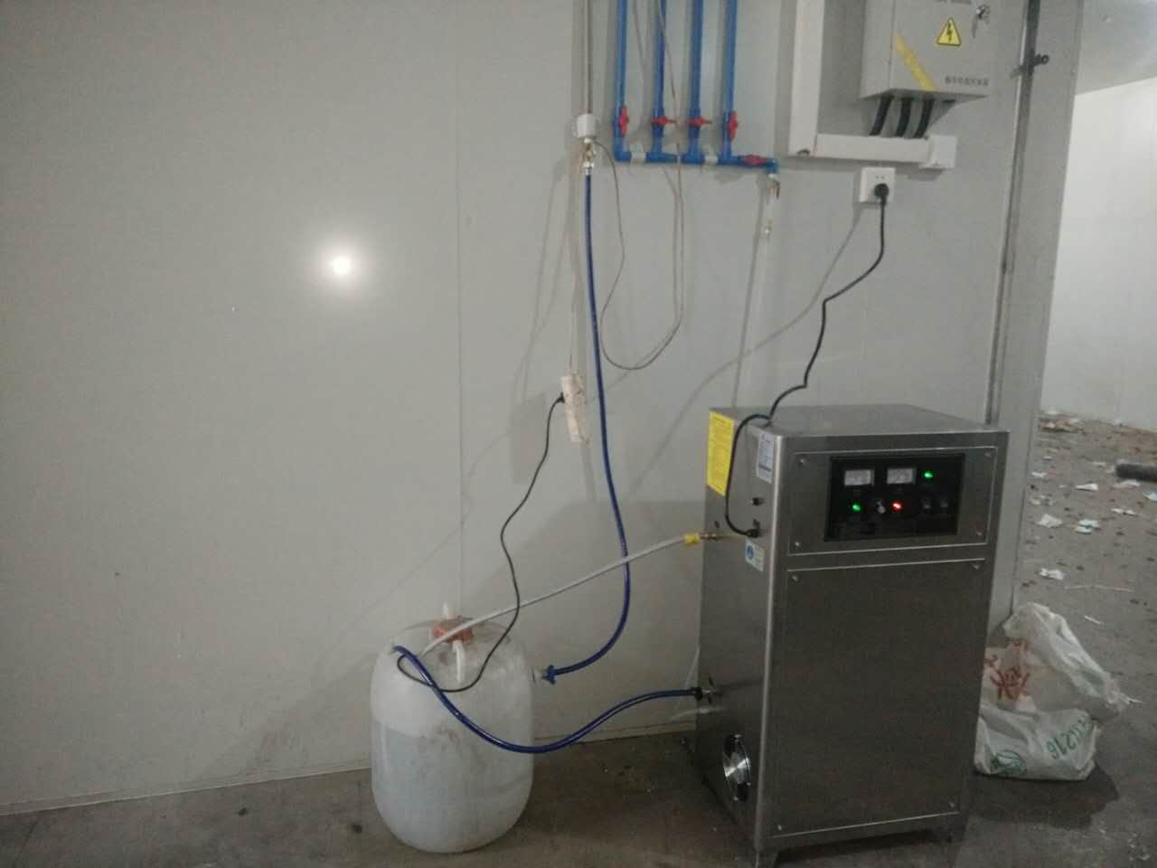 三:以下是接種室臭氧投加的管道布置現(xiàn)場(chǎng)圖: